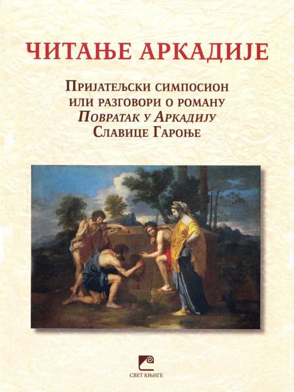 У свом роману „Повратак у Аркадију“, Славица Гароња је посегла за основним постулатима мотива Аркадије, дарујући српској књижевности један (анти)утопијски сан, смештен у идиличан простор Славоније, са истим таквим становницима, али увелико нарушен деструктивним временским процесима с краја нашег (20.) века. О Славичином роману су у овом „пријатељском симпосиону“ проговорили наши најеминентнији књижевни стручњаци и драгоцени читаоци различитих професија. Они су на различите начине доживели овај роман из 106. Кола Српске књижевне задруге, који је награђен угледном наградом „Печат времена“ (2015), потврђујући да он „по својим уметничким и естетским квалитетима представља трајан допринос књижевној уметности“ на српском језику.
