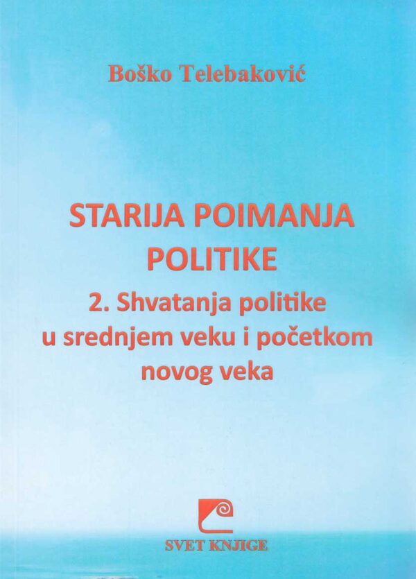 У првом делу књиге размотрени су средњовековни приступи политици. Изложена су политичка схватања у Византији и погледи раних западних мислилаца у средњем веку. Поменути се Мухамед, исламски, хебрејски и хришћански мислиоци, као и Тома Аквински, и описана су виђења политике тог времена. Оцртане су и основне идеје ренесансе. Пажња је посвећена Макијавелију и мислиоцима после њега. Размотрени су Лутерови ставови и ставови оних који су покушавали да дају одговоре на питања о политици тог времена, као и Гроцијева и Бодинова теорија. У другом делу књиге представљен је почетак политичких схватања новог века. Они који су највише допринели разумевању политике тог времена били су Спиноза, Лајбниц, Бекон, Хобс, Лок и Хјум. Обрађени су и мислиоци доба просветитељства. Завршна разматрања тичу се политичке теорије Монтескјеа, Волтера, Кондорсеа и Русоа.