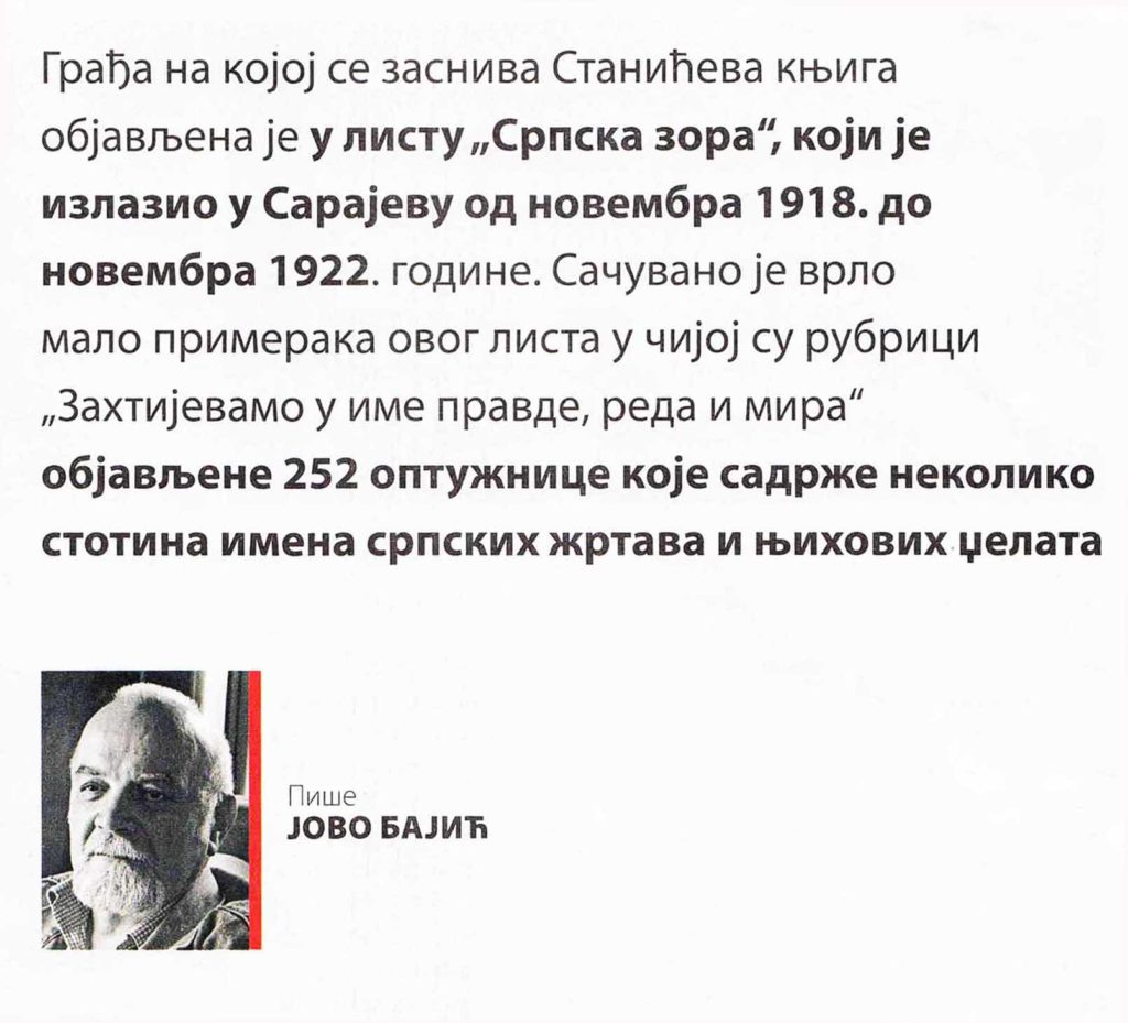 „Захтијевамо у име правде, реда и мира“ – 252 оптужнице објављене у „Српској зори“, од 1918. до 1922, садрже неколико стотина имена српских жртава и њихових џелата
